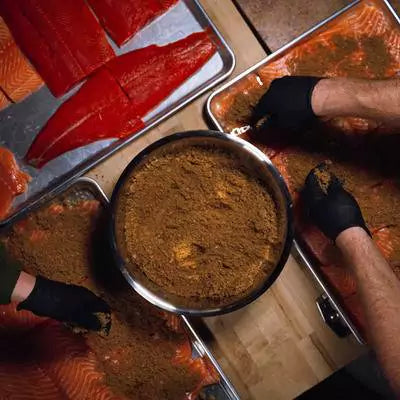 In order for a good smoked salmon, you need to start with the fish itself. We only use fresh caught salmon staying away from chemicals and inhumane conditions. We hand-cure and smoke our fish within reasonable time of bring caught in order to bring out that natural and newly-harvested texture and flavor.